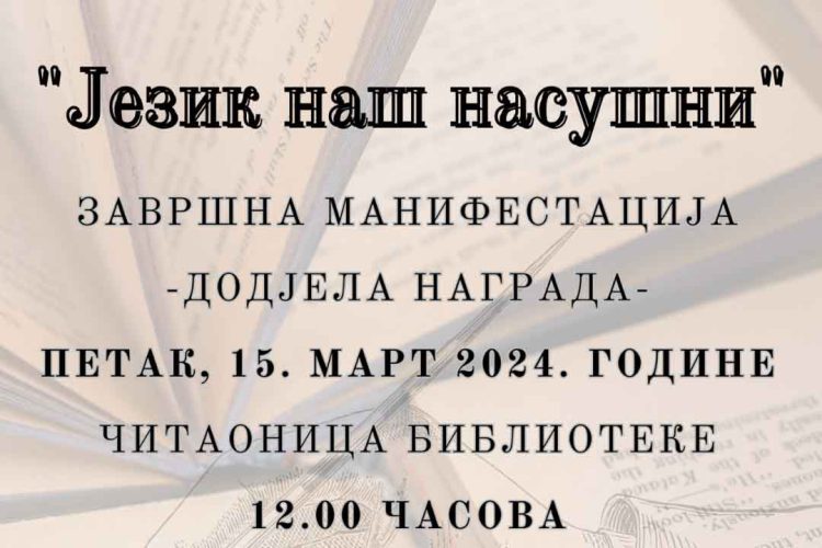 JU “Narodna biblioteka” Gradiška je, u saradnji sa Srpskim prosvjetnim i kulturnim društvom “Prosvjeta“ Gradiška, na praznik Svetog Save, 27. januara 2024. godine, raspisala je konkurs za najljepši ćirilični rukopis “Jezik naš nasušni“.