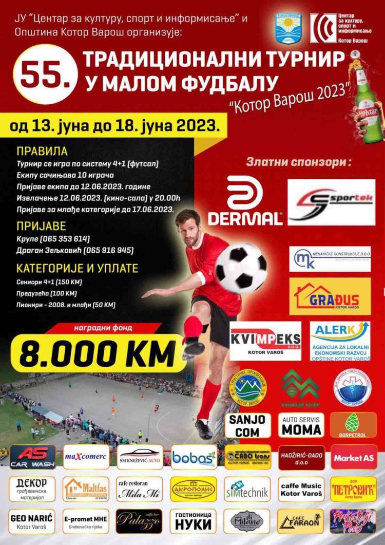 Tradiocionalni turnir u malom fudbalu pod nazivom “Kotor Varoš 2023” će ove godine biti organizovan po 55. put, što ga svrstava u jedan od najdugovječnijih turnira na ovim prostorima.