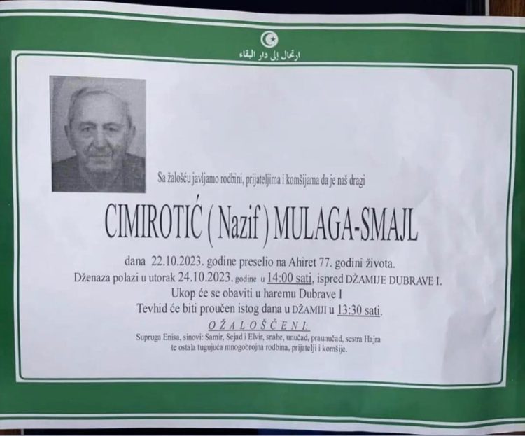 Cimirotić će biti sahranjen Dubravama I, 24.11.2023. godine u 14:00 časova.