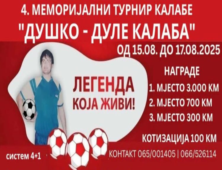 Od 15. do 17. avgusta 2025. godine u Prnjavoru će se održati održati 4. Memorijalni turnir “Duško Dule Kalaba” u čast i sjećanje na legendu koja živi u srcima svih ljubitelja fudbala. Turnir će se igrati po sistemu 4+1, a očekuje se učešće brojnih ekipa iz regiona.