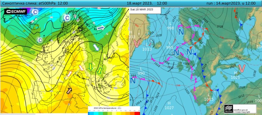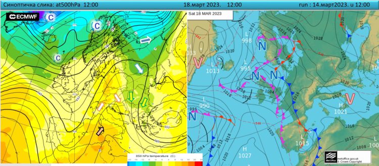 U subotu (18.03.): Pretežno sunčano i toplo uz promenljivu oblačnost. Minimalna temperatura vazduha od -1°S do 3°S, u višim predjelima od -5°S. Maksimalna temperatura od 7° S do 15°S, u višim predjelima od 5°S.