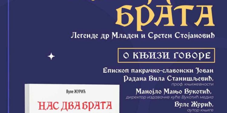 Knjiga Vuleta Žurića „Nas dva brata“, životopis Mladena i Sretena Stojanovića biće predstavljena u Kulturnom centru Gradiška u četvrtak, 5. septembra od 19.00 časova.