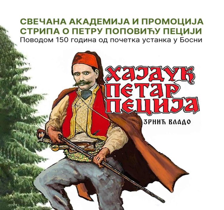 Povodom 150 godina od početka ustanka u Bosni i Hercegovini u Kulturnom centru Gradiška biće obilježena godišnjica i priređena promocija stripa o hajduku Petru Popoviću Peciji, u četvrtak 14.08. 2025. godine u 19 časova.