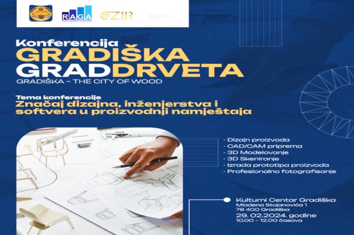 Konferencija “Gradiška grad drveta” je prva konferencija u ovoj godini i namijenjena je prezentaciji usluga Centra i prezentaciji dosadašnjih saradnika, klijenata kao i izložbi prototipova namještaja koje smo proizveli u poslednjie tri godine postojanja i rada Centra.