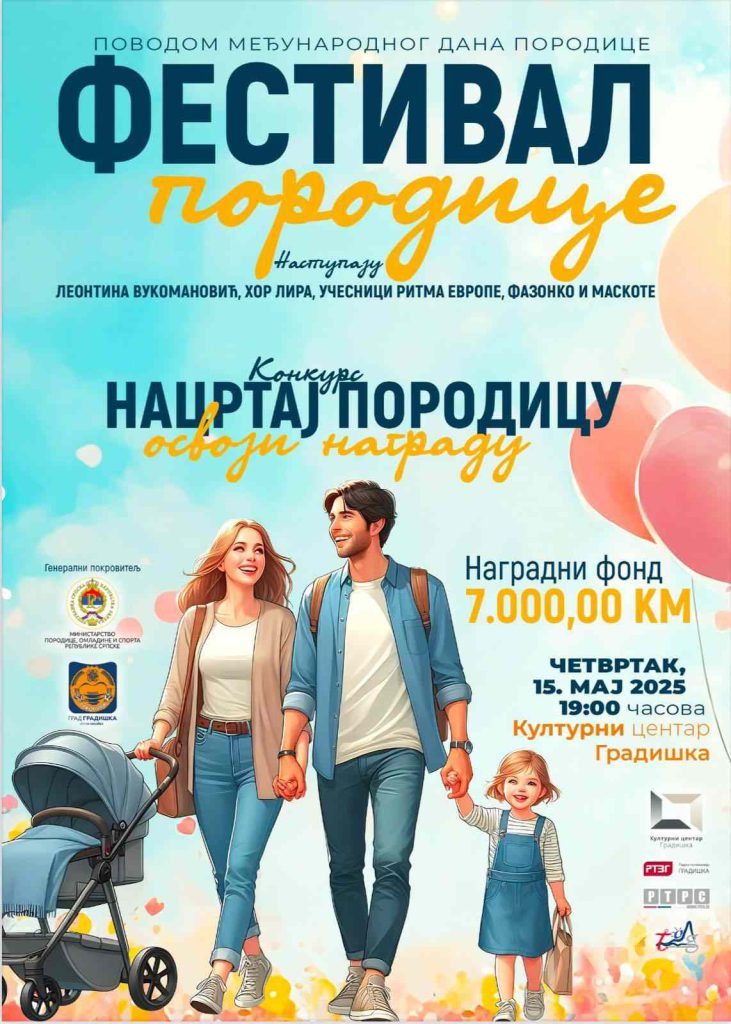 U organizaciji grada Gradiška, a uz podršku Ministarstva porodice, omladine i sporta Republike Srpske, Kulturnog centra Gradiška i Javne predškolske ustanove „Lepa Radić“, Gradiška će svečano obilježiti Međunarodni dan porodice u četvrtak, 15. maja 2025. godine, manifestacijom u znaku porodičnog zajedništva i podrške svim generacijama.