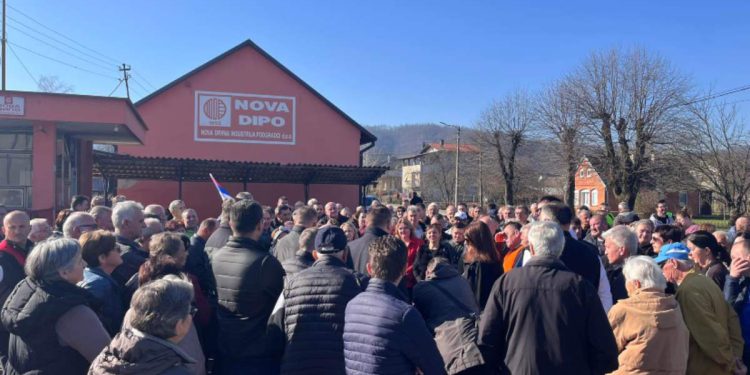 Radnici Drvne industrije “Nova DIPO” iz Gornjih Podgradaca okupili su se jutros ispred kapije ovog preduzeća koja je za njih oko stotinu zatvorena. Uprava firme im je naprasno udijelila otkaze, uz 56 mjeseci neplaćenih doprinosa i tri neisplaćene neto plate.