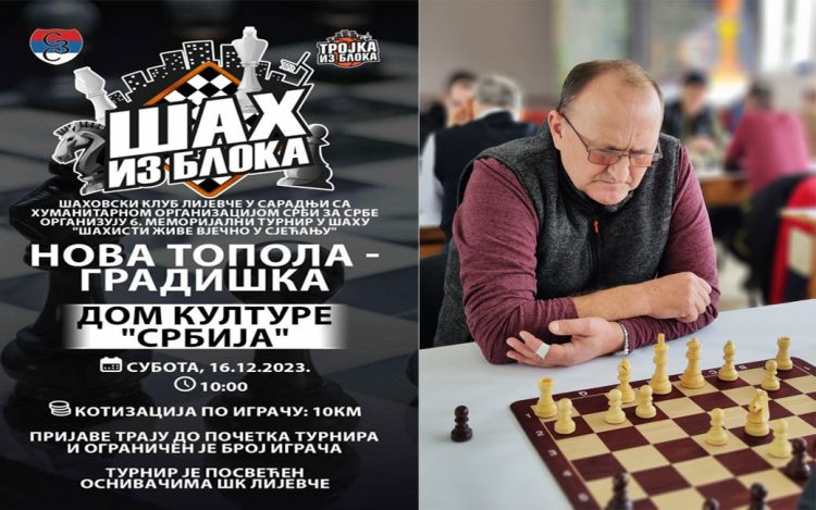 ŠK “Lijevče” i humanitarna organizacija “Srbi za Srbe” organizuju humanitarni turnir, u subotu 16.02.2023. godine u Domu kulture “Srbija” u Novoj Topoli sa početkom u 10 časova.