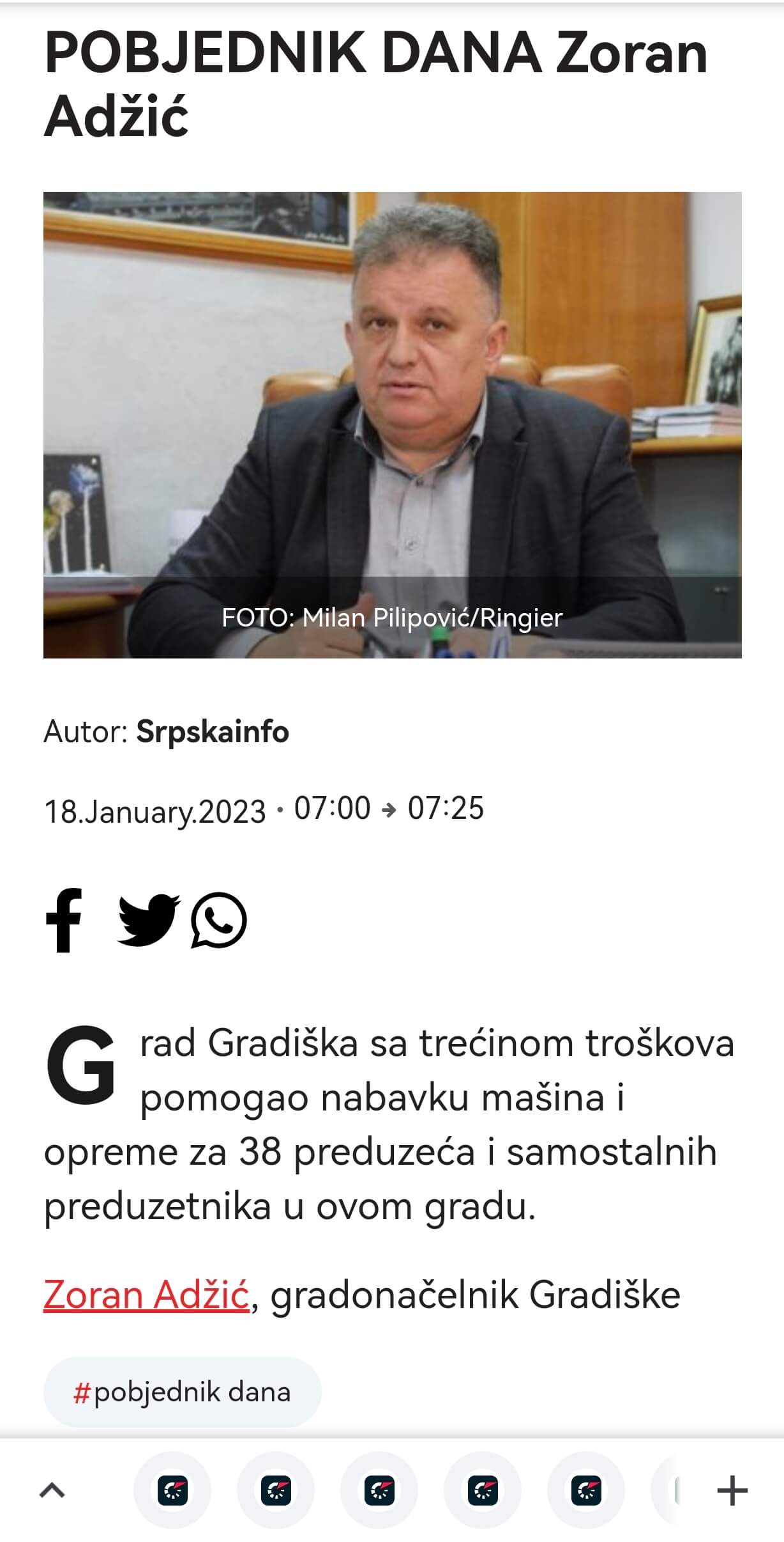 „Milan Pilipović je dolaskom Zorana Adžića na vlast u Gradišci uskratio BN-u sve informacije iz našeg grada, a krenuo sa hvalospjevima na račun gradonačelnika. Pilipović je kumovao gašenju Medija Info+, jer je nagovorio Adžića da otvore Radio-televiziju čiji je on urednik ali se nigdje ne vodi kao zaposlenik RTV Gradiška. Prijateljstvo Pilipovića i Adžića se vidi kroz javne nabavke o kojima sam ljetos na sjednici Skupštine Gradiška ukazivao. Tako je Adžić Pilipoviću isplatio preko 20 000KM novca građana Gradiške, a mediju za koji Pilipović radi i na kojem objavljuje hvalospjeve na račun Adžića je isplaćeno preko 14000KM novca građana Gradiške“, objašnjava Dončić, a u prilog njegovim tvrdnjama idu i tekstovi objavljeni od strane spornog novinara koje možete da vidite.