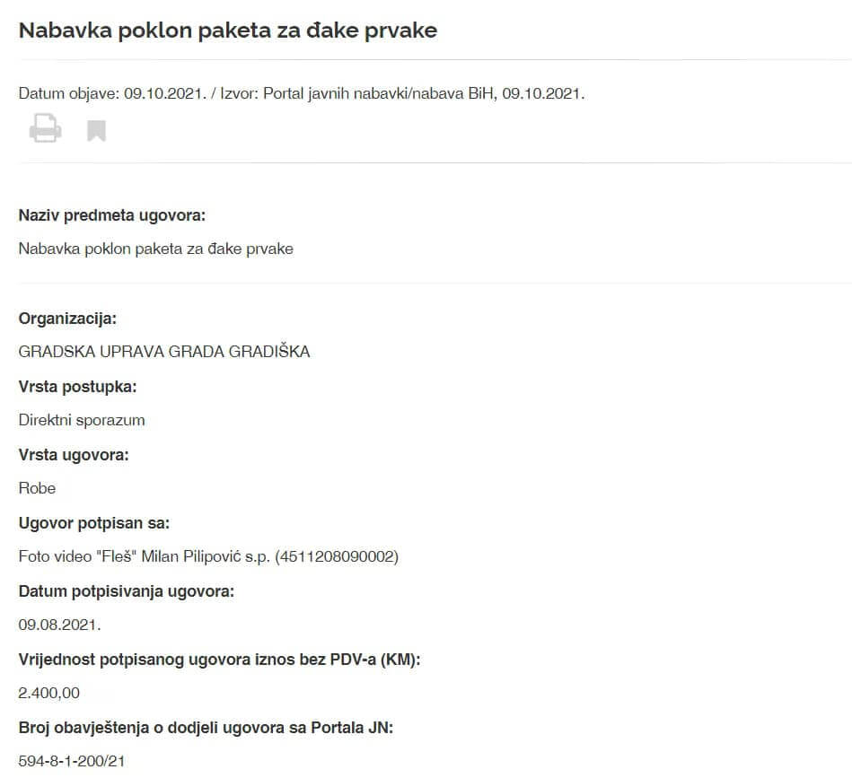 Interesantno, u odgovoru se ne spominju druge vrste ugovora i saradnje koji grad ima sa navedenim novinarom i njegovom firmom, a posebno ne spominju zašto su firmi Foto video „Flash“ direktnim sporazumom dali ugovor od 2400 KM bez PDV-a pod nazivom „Nabavka poklon paketa za đake prvake“? Da li i to spada u iskustvo novinara i njegove firme?