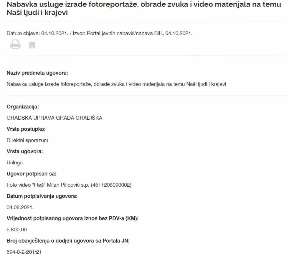Naime, prema pisanju portala Mikro mreža firma Foto video „Flash” novinara Blica/Srpska info Milana Pilipovića sklopila je direktne sporazume sa gradom u vrijednosti od 22 000 maraka bez PDV-a u prethodnih godinu i po dana. Ako tome dodamo da su dnevne novine “Blic” dobile u dva navrata iz Budžeta grada po 6000 bez PDV-a, a samim krajem prošlog mjeseca još dodatnih 6000 KM za promociju grada, onda je jasno da se radi o dobroj saradnji sa jedne strane urednika Radio-televizije Gradiška i novinara Milana Pilipovića, a sa druge strane gradonačelnika grada na Savi.