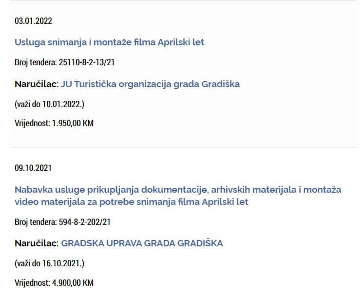 „Navedena firma Foto video „Flash“ s.p. u proteklih godinu i po dana, po našem zahtjevu, realizovala je dokumentarni film „Aprilski let“, kao i serijal od deset epizoda „Naši ljudi i krajevi“, sa ciljem da afirmišemo i prezentujemo prošlost i potencijale našeg grada. Sve je emitovano na Javnom servisu RTRS, a nakon toga i na drugim televizijama širom Srpske i Srbije. Riječ je isključivo o autorskom djelu novinara Milana Pilipovića“, navode iz gradske uprave i dodaju da iza te saradnje ne stoje nikakve druge namjere, osim korištenja iskustva novinara i firme.