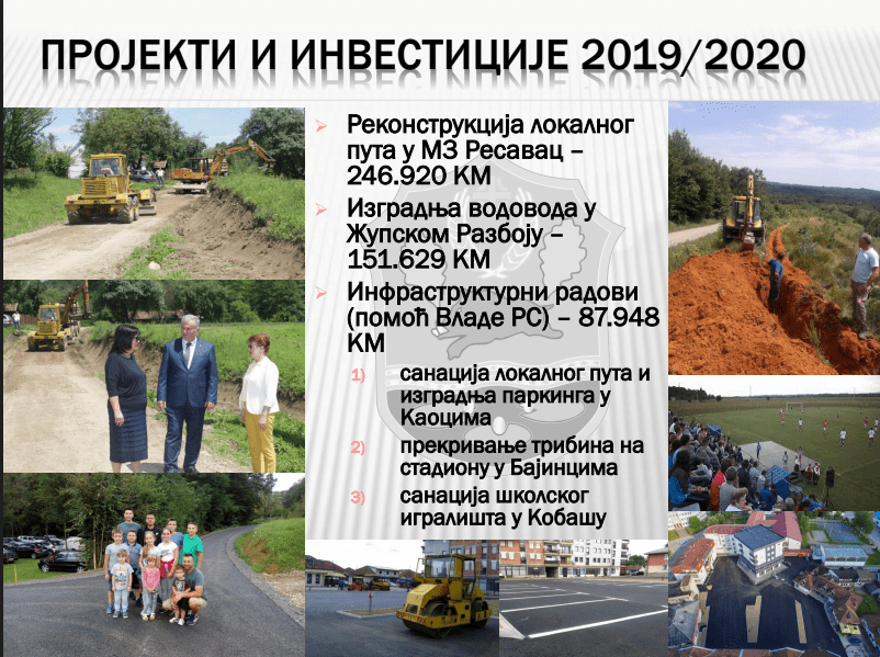 U avgustu ove godine SO Srbac usvojila je Plan o dopuni Plana kapitalnih investicija opštine za 2020. godinu. Plan je dopunjen sa devet projekata, a sredstva za ove projekte u iznosu od skoro 1,54 miliona KM obezbijedila je Vlada Republike Srpske.