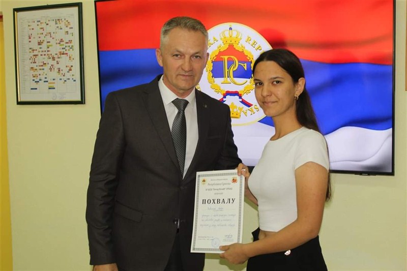 Tokom školovanja je osvojila drugo mjesto na regionalnom takmičenju iz istorije, a višestruki je učesnik akcija dobrovoljnog davanja krvi.