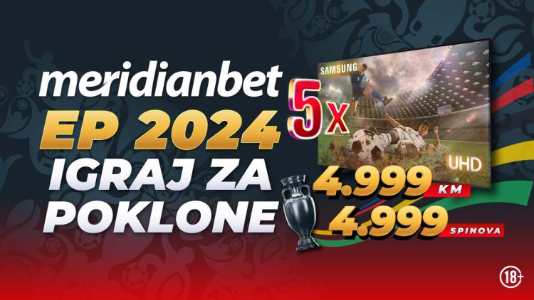 Meridian poklanja pet smart televizora UHD rezolucije, 4.999 KM sportskog bonusa i 4.999 besplatnih spinova na Meridian online kazinu.