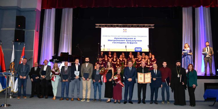 Prvo je uručena zahvalnica grada Gradiška i to za zasluge u oblasti kulturno-umjetničkog rada Kulturno-umjetničkom društvu “Kozara”, Gornji Podgradci. Za zasluge i postignute rezultate u oblasti obrazovanja i razvoja muzičke umjetnosti Zahvalnica je dodijeljena Javnoj ustanovi Osnovna muzička škola „Branko Smiljanić“ Gradiška. Kada su u pitanju rezultati postignuti u očuvanju kulturno-istorijskog naslijeđa, Zahvalnica je dodijeljena Društvu kolekcionara, istoričara i poštovalaca istorije „Denarius” Gradiška.