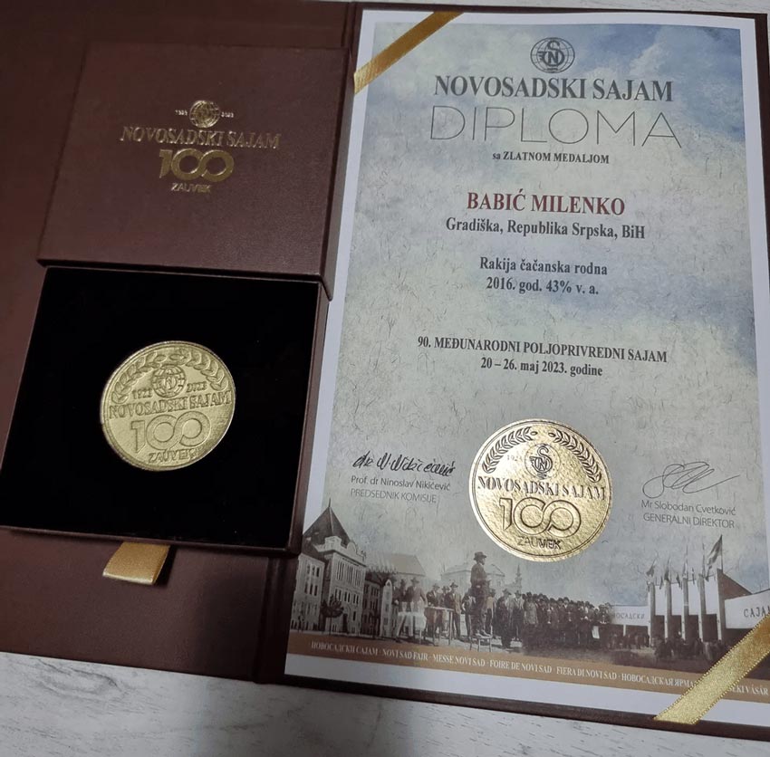 Milenko Mika Babić je na Poljoprivrednom sajmu u Novom Sadu osvojio zlatnu medalju za kvalitet, ukus, boju i starost rakije šljive.