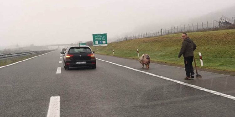 Vozače je danas na autoputu Banjaluka–Gradiška, u Romanovcima, zatekao neobičan prizor – svinja kako šeta po kolovozu.