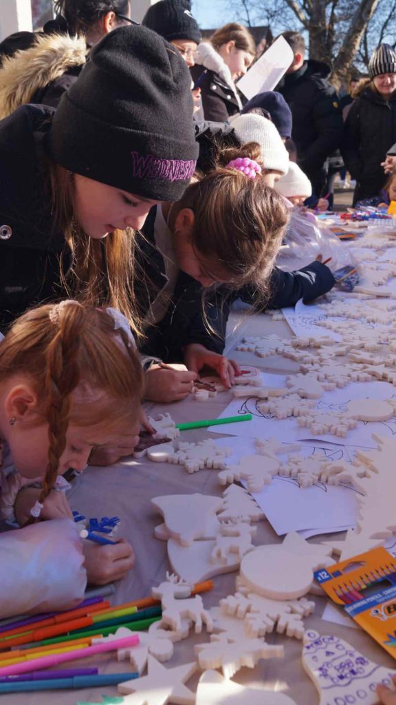 Prema riječima organizatora, prvi dio događaja bio je posvećen najmlađima, za koje je organizovana radionica izrade i ukrašavanja novogodišnjih ukrasa. Djeca su imala priliku da boje i dorađuju pripremljene ukrase, koje su potom zajedno postavljali na jelku, dajući joj poseban i lični pečat.