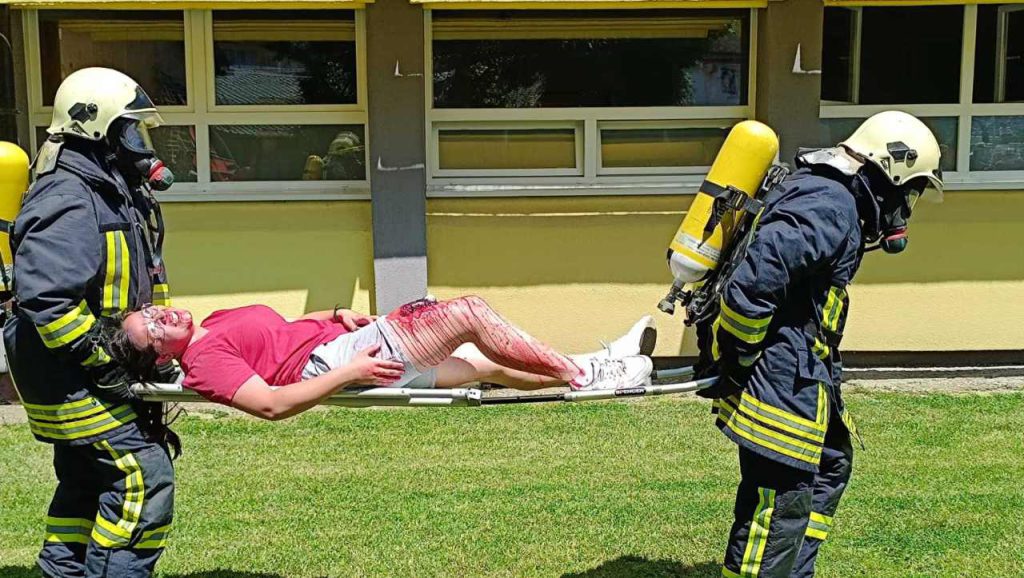 Potom je uslijedilo postupanje pripadnika hitnih službi,Teritorijalne vatrogasne jedinice, ekipa Hitne pomoći, Gorske službe spašavanja i policije koji su vršili simuliranu evakuaciju povrijeđenih lica iz objekta škole, a kojima su prvu pomoć pružili volonteri Crvenog krsta. Nakon trijaže na poligonu, teže slučajeve zbrinula je služba Hitne pomoći Doma zdravlja Srbac, čime je okončana pokazna vježba.