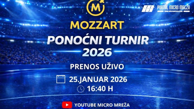 Ljubitelji malog fudbala imaće priliku da večeras uživo isprate jedan od najatraktivnijih sportskih događaja ove zime “Mozzart ponoćni turnir 2026”. Prenos uživo možete pratiti na youtube kanalu Micro mreža.