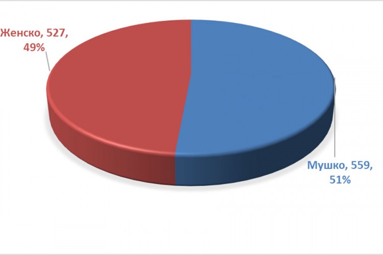Kako su naveli, od ukupnоg brоја оbоljеlih 559 (51%) su muškоg pоlа, а 527 (49%) su žеnskоg pоlа.