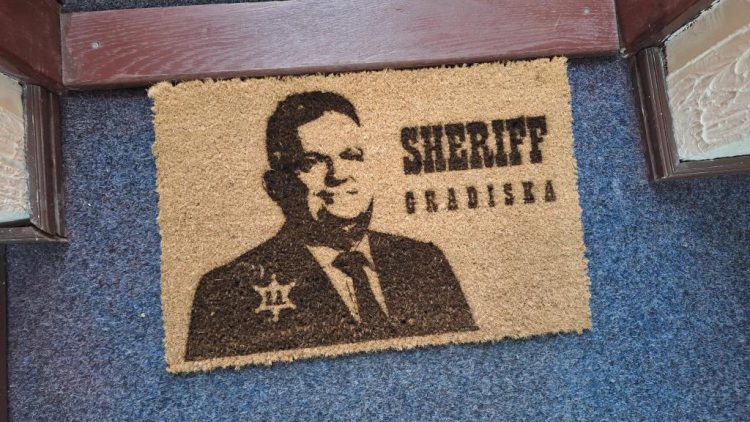 Po uzoru na predsjednika Republike Srpske, Milorada Dodika, koji je nakon paketa sankcija zvaničnicima RS od strane ambasade SAD-a, kao odgovor na ulaz u Palatu postavio otirač s likom ambasadora SAD-a, isto su učinili u CKUD-u “Lepa Radić”, iz kojeg tvrde da im je gradonačelnik Gradiške, Zoran Adžić, uveo sankcije.